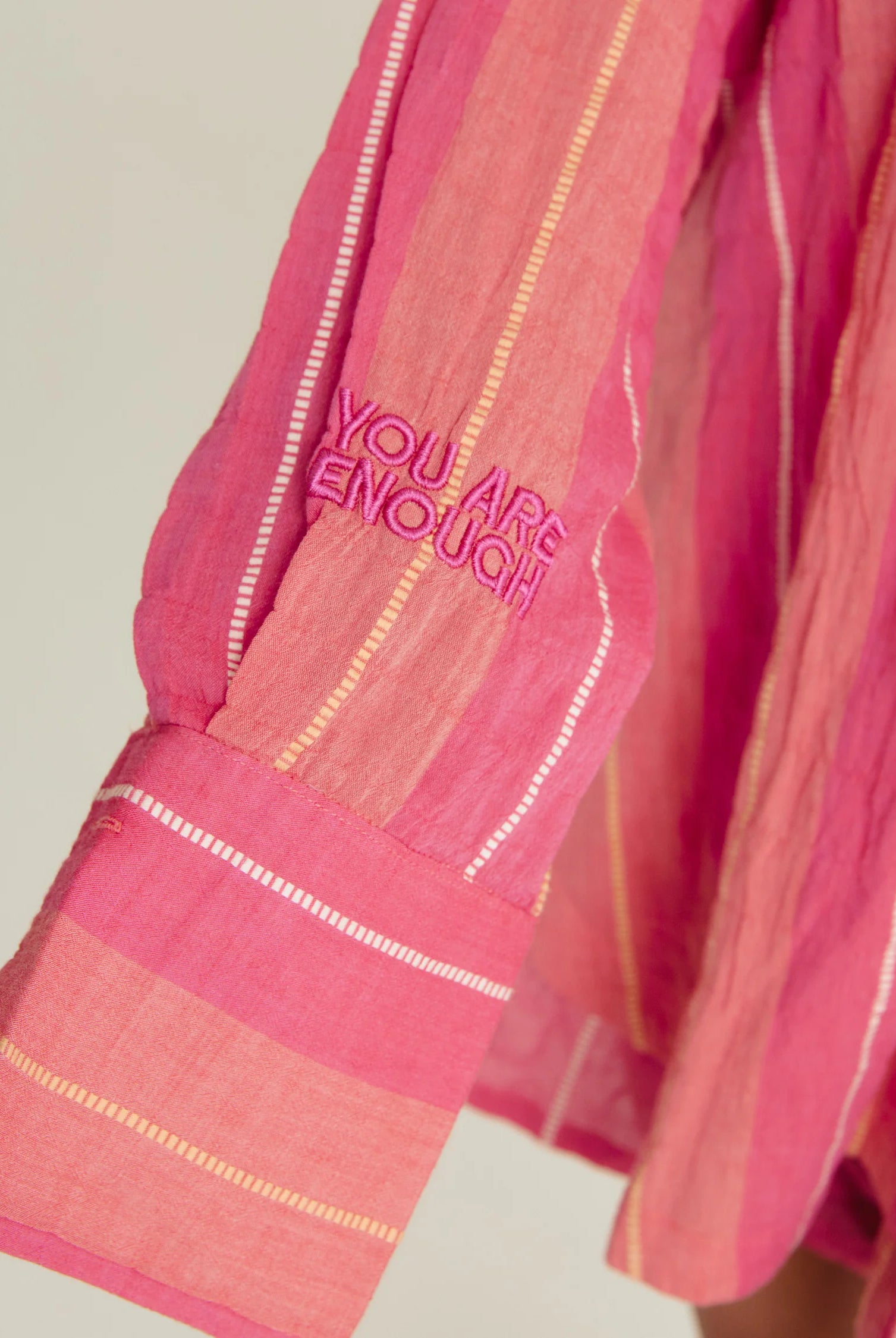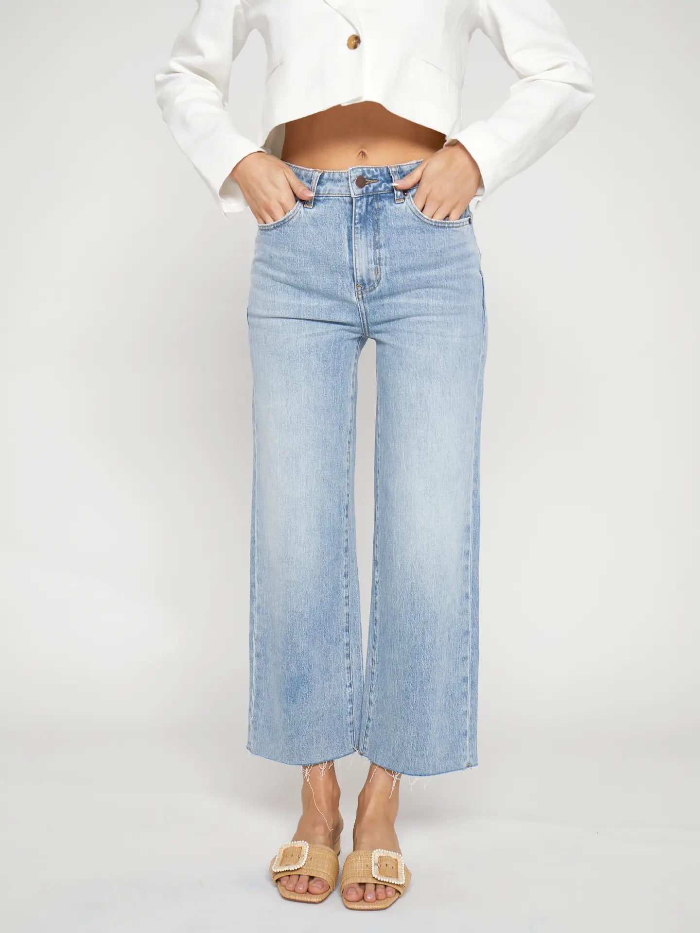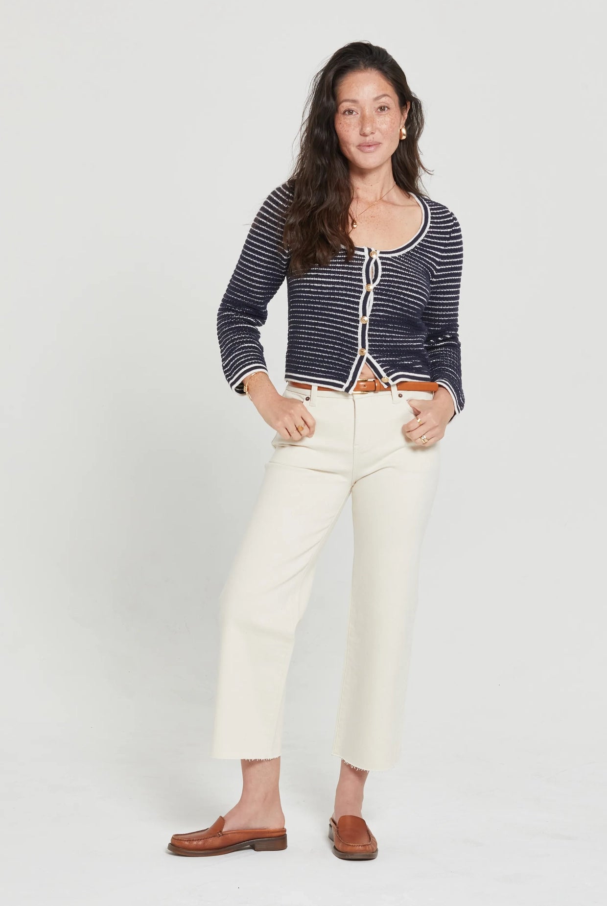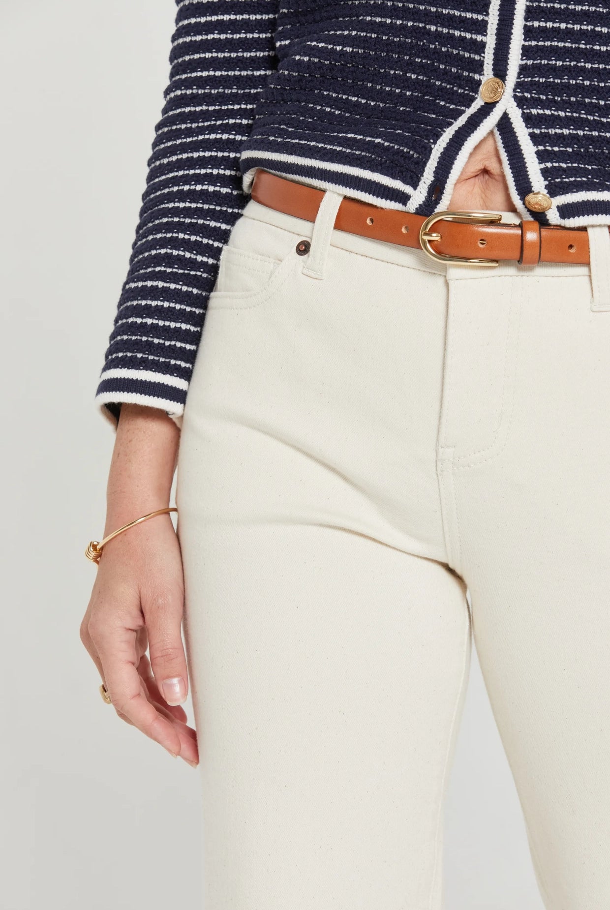 - Relaxed, oversized silhouette with raw hem details and ladder stitching