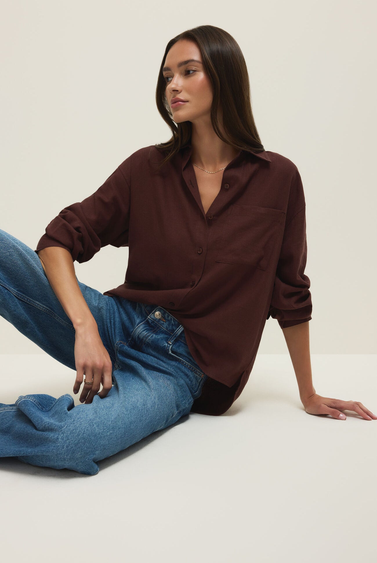 - Relaxed/oversized fit
