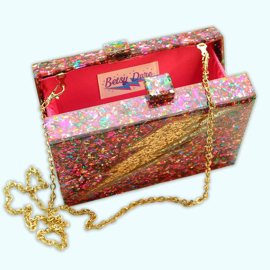 Pink Rainbow Confetti Lightning Bolt Acrylic Clutch