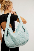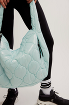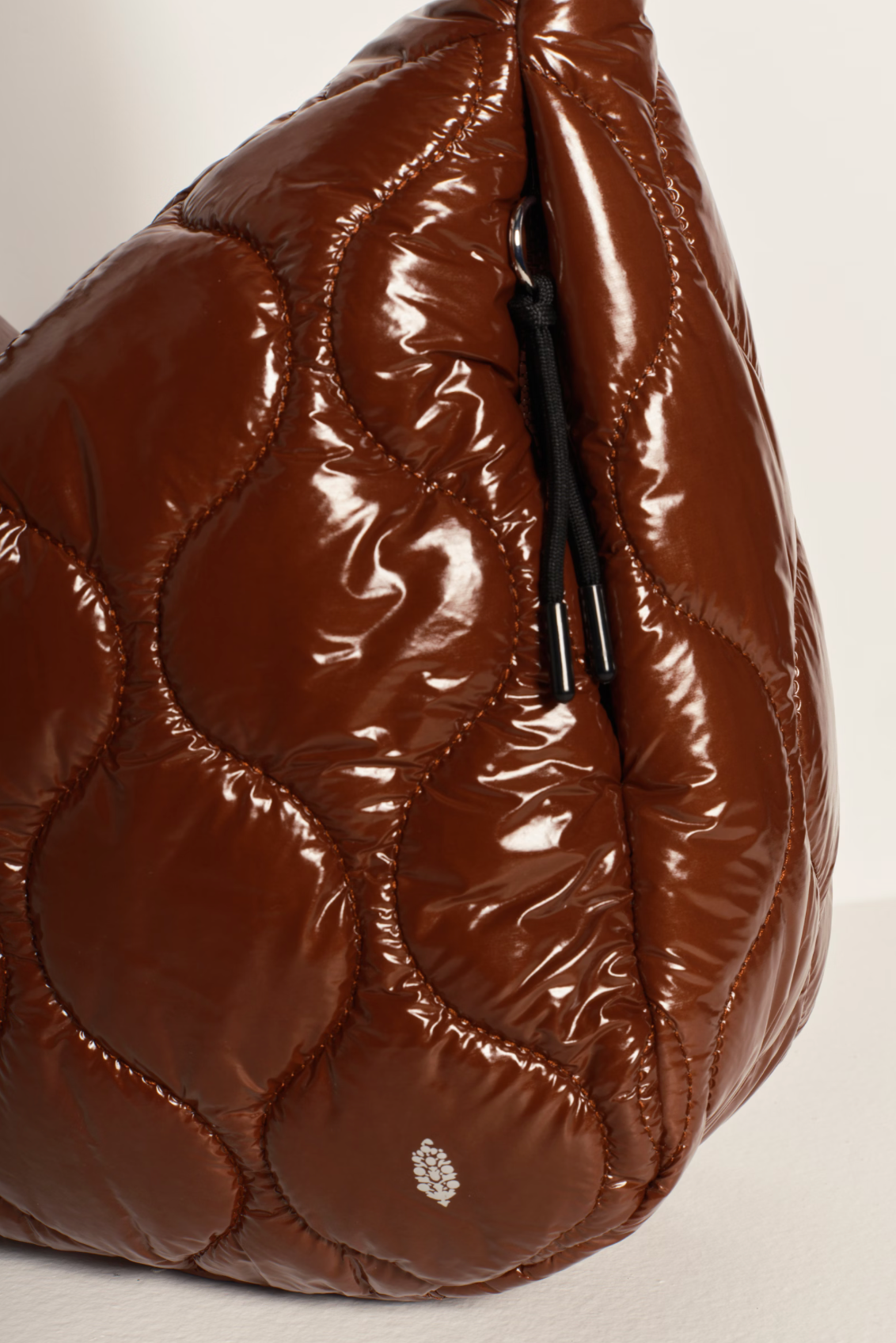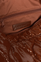 Just as effortless as it is essential, this so cool carryall bag is featured in an oversized style and quilted shiny fabrication to add an added special touch.