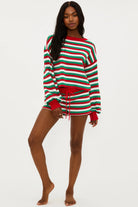 Our best-selling Balboa Short is now available in our sparkly Merry Stripe print. Get ready for the holiday season with these lightweight shorts that have a relaxed fit and an elasticated waistband with a drawstring. They are the perfect piece to throw on for a beach cover-up or cozy lounge look. Pair the matching Ava Sweater in Merry Stripe or with the Ayla Legging in Jelly Bean Green or Red.