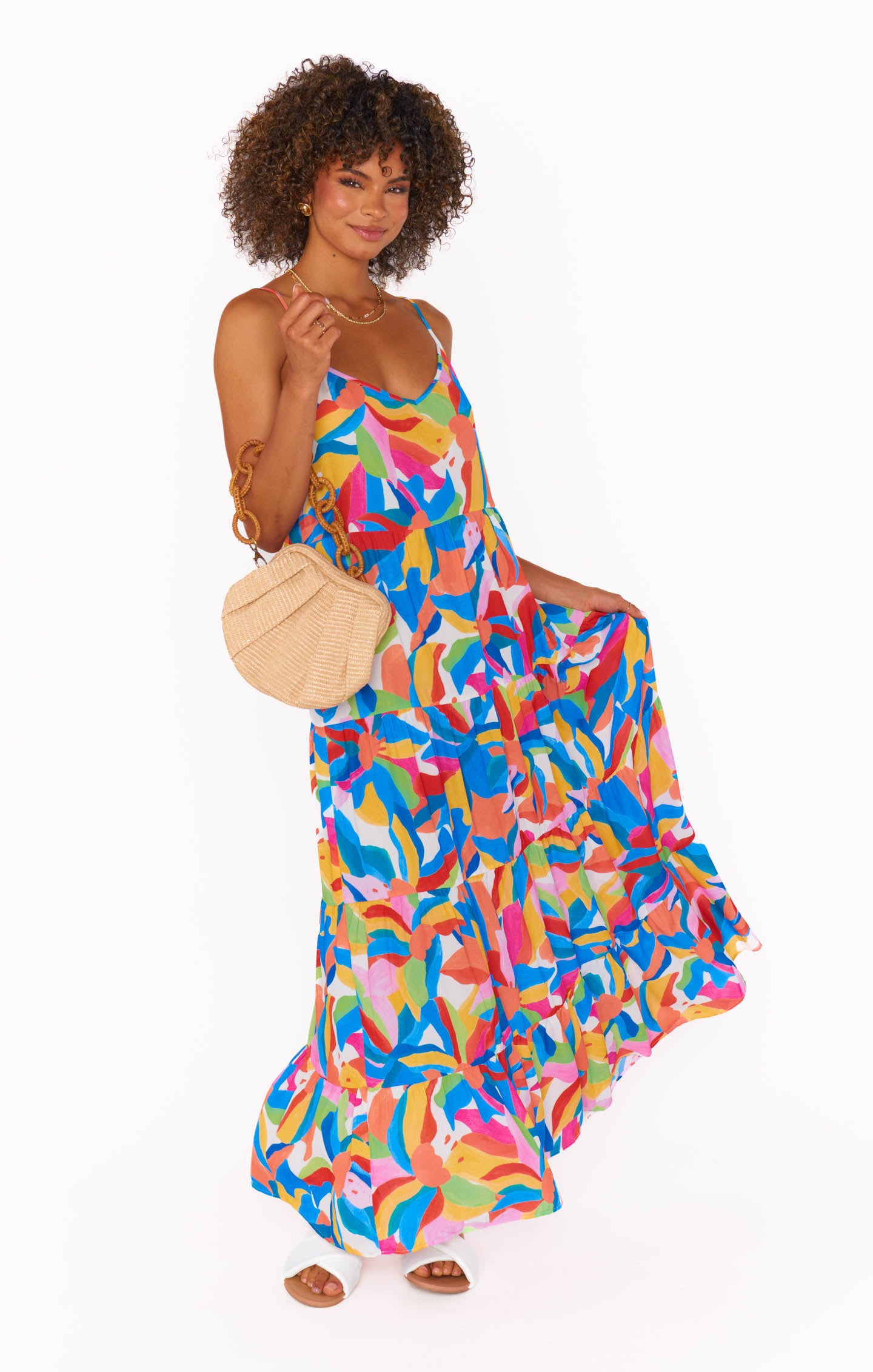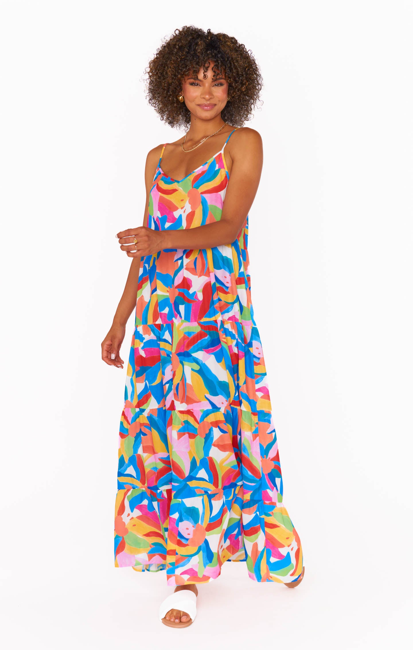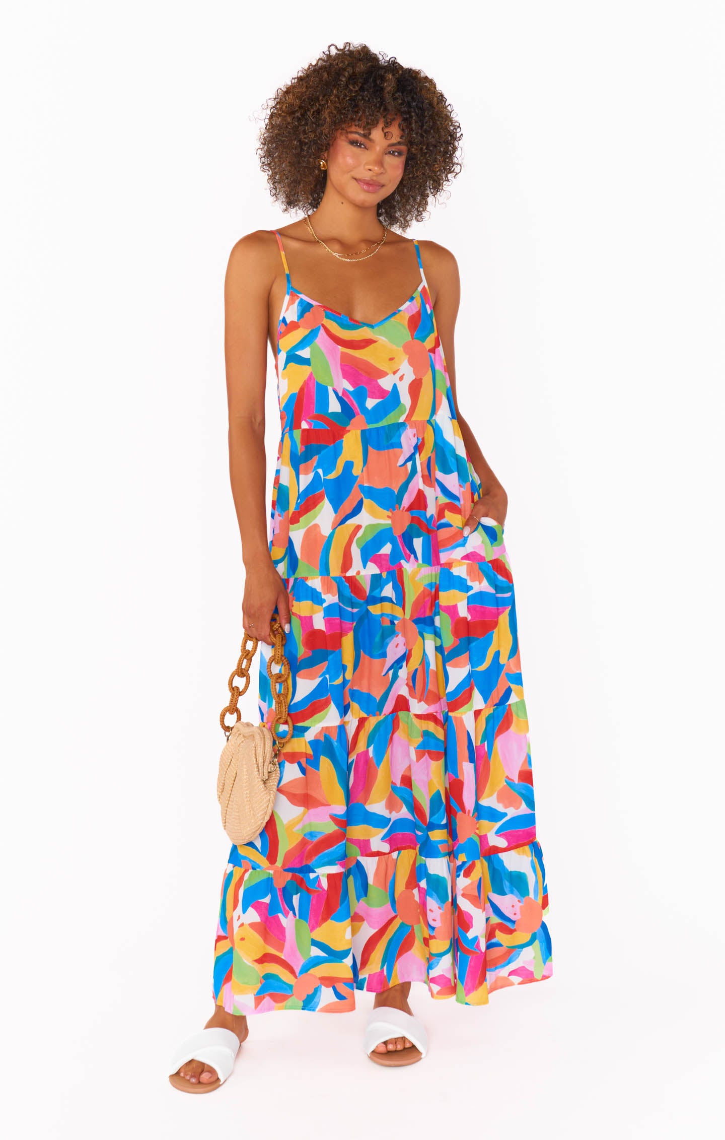 This favorite strappy dress is now in a maxi length! The Caroline Maxi Dress is a vacation must have with her breezy tropical fabric and fish print, adjustable straps, and perfectly tiered flow!