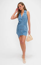 The Fairfield is the denim dress you didn't know you needed! Featuring a button front, handy patch pockets, and a sharp collar to top it off, it's finished with a flattering waist-cinching sash to tie it all together. Pair with cowboy boots for festival days or heeled sandals for a backyard BBQ!