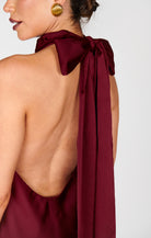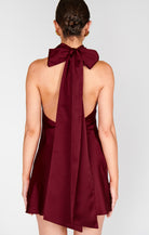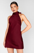 The Lisa Mini is all glam with no fuss. Crafted in cranberry luxe satin, this halter-style stunner features a high neckline with a chic scarf detail that brings major elegance. Its clean A-line cut keeps things sleek while the mini length serves up just the right amount of sass.
