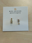 Celebrate in style with this sparkling mismatched earring set featuring a rhinestone-studded champagne bottle and a crystal-covered glass topped with pearly “bubbles.” Perfect for parties, holidays, or whenever you want to add a little extra fizz to your look.