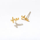 Custom cut in the handwritten cursive script of our own boss babe, Larissa, this is a 100% original design and 100% badass on a sterling silver friction push back post with sterling silver butterfly ear nut.