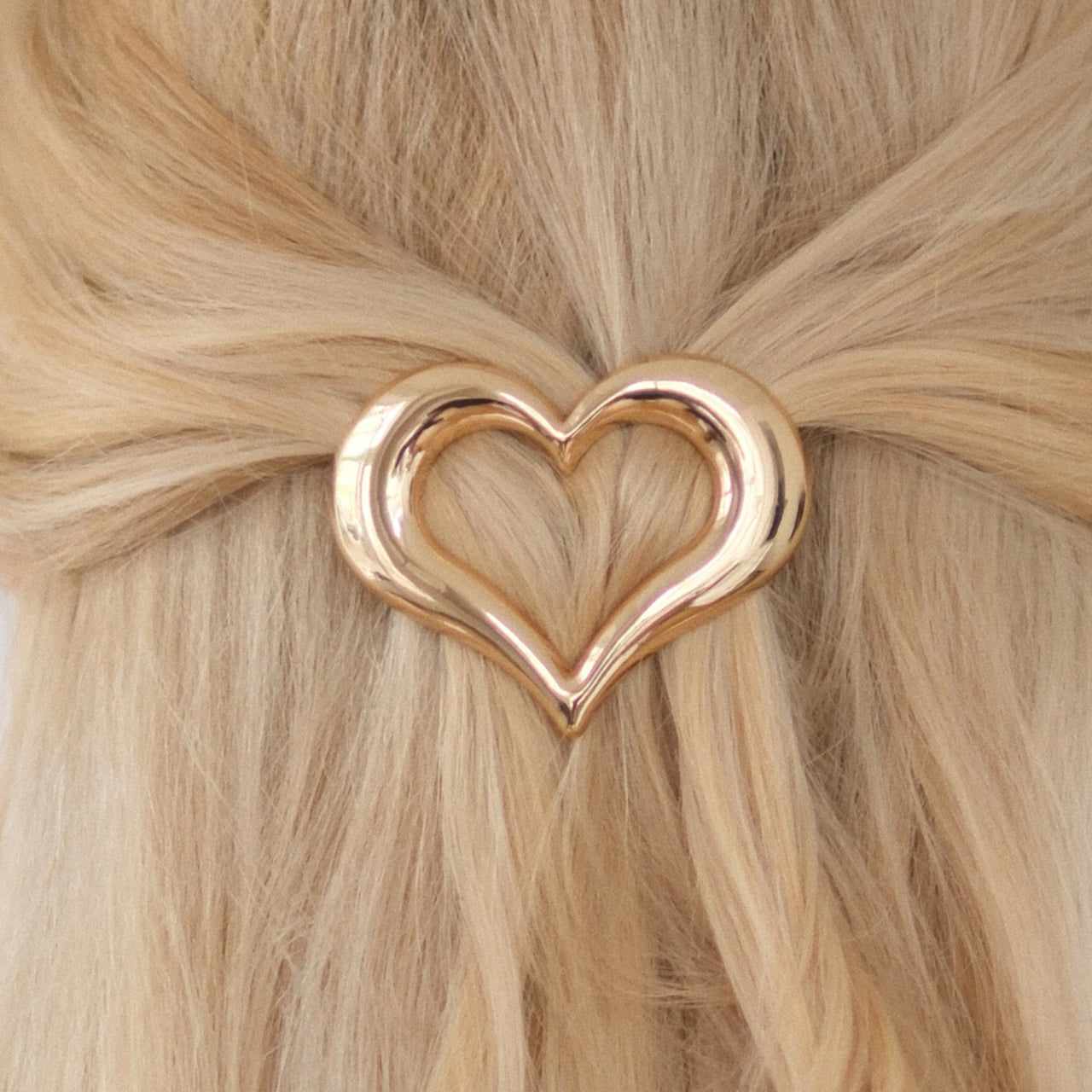 Enhance your half up half down hairstyle with our Chunky Heart Clip. Made with premium gold material, this hair clip adds a touch of elegance and luxury to any look. Perfect for showing off your romantic side on Valentine's Day.