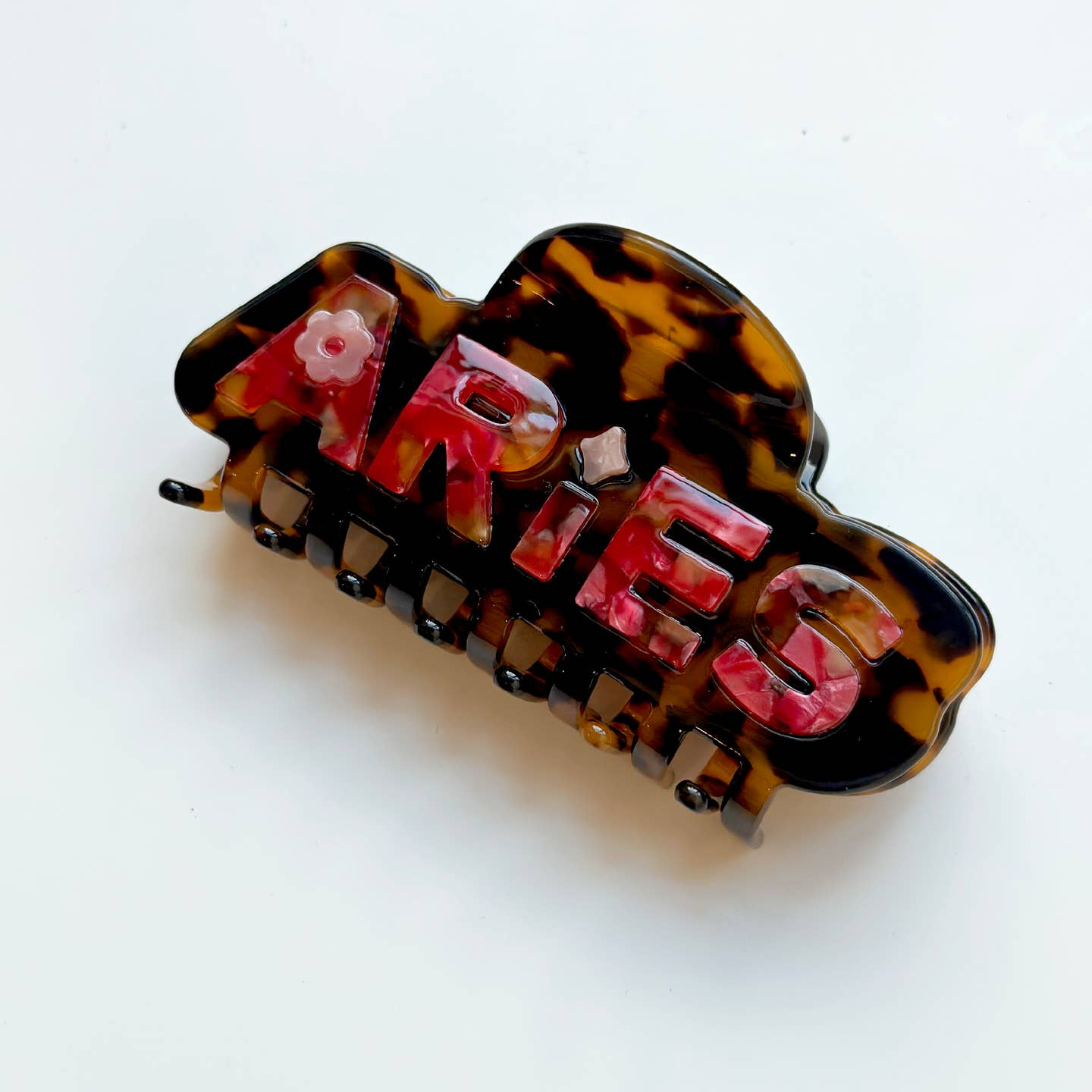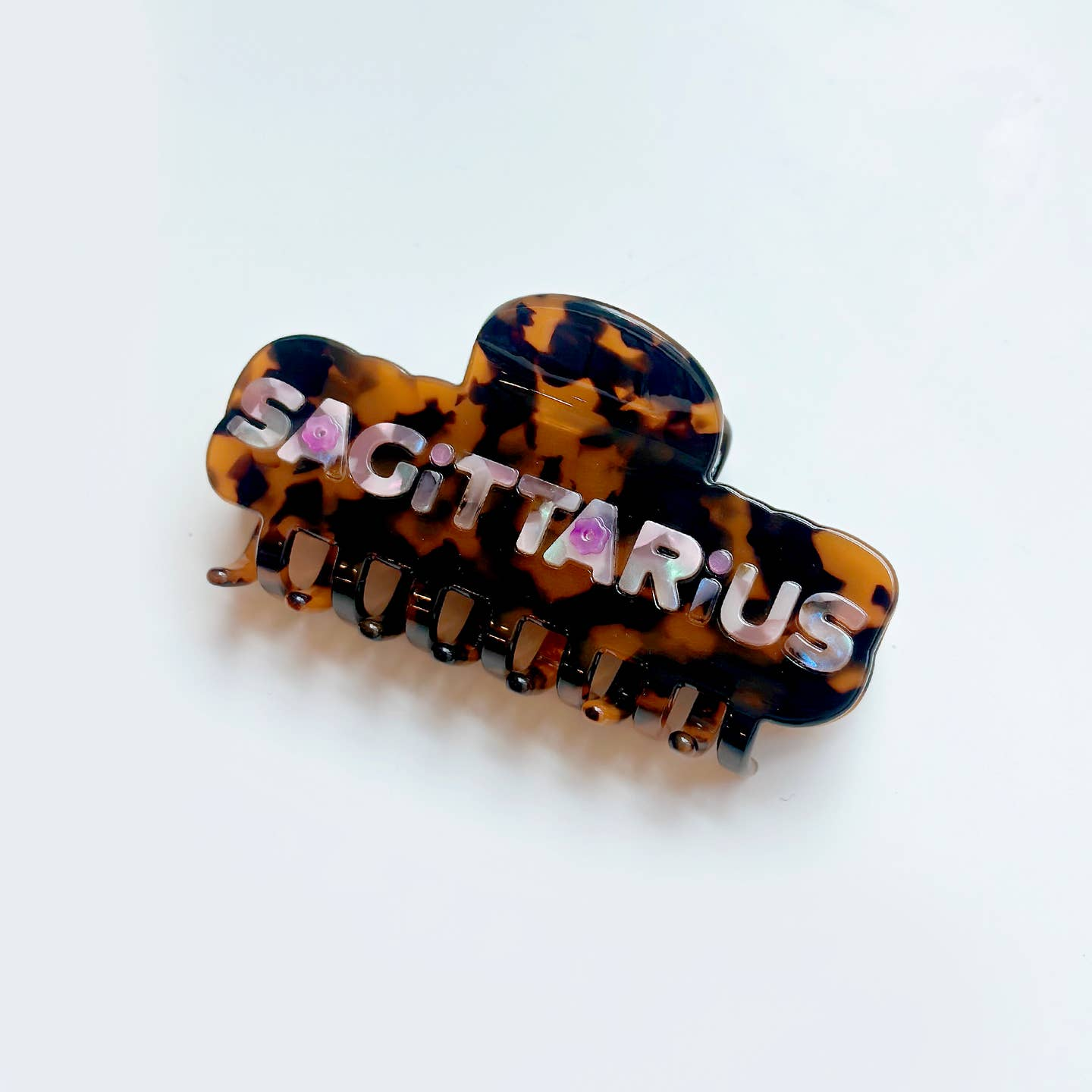 Indulge in luxury with our Tortoise Zodiac Claw Clip. This tortoise shell claw clip is adorned with intricate zodiac designs, adding a touch of elegance to any hairstyle. Easy to use and versatile, it's the perfect finishing touch for any look. Elevate your style with this exclusive accessory.