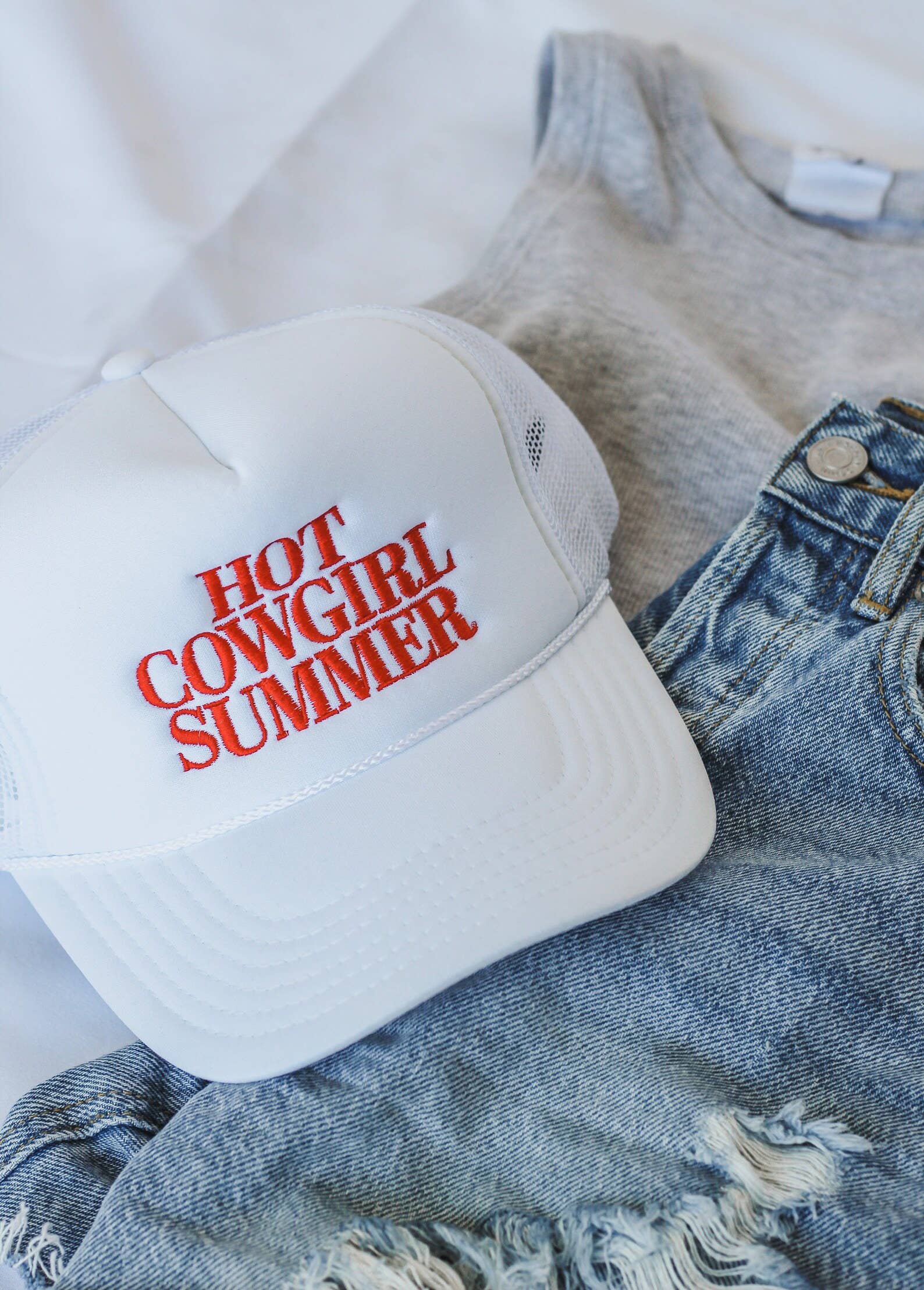 Giddy up for a sizzling summer with our Hot Cowgirl Trucker Hat! Perfect for keeping cool and turning heads, this hat brings the heat with a playful twist. Ride into the season with style and sass. (Yee-haw!)