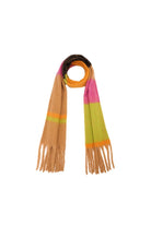 This multi-coloured orange and blue toned cashmere and wool blend oversized scarf is a must have for this season. The contrasting panels really make it stand out from the crowd.