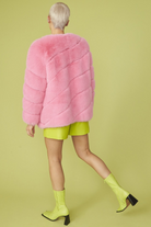 A pink faux fur coat is a stylish and fashionable outerwear garment made from synthetic materials designed to imitate the look and feel of real fur. The coat features a soft and fluffy texture with long, shaggy fibers. The pink faux fur coat is a fun and playful way to add a pop of color and texture to your wardrobe while staying cozy and fashionable.