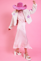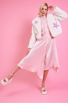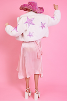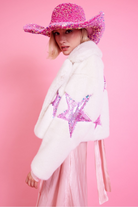 White Bamboo Faux Fur Sequins Star Jacket