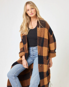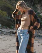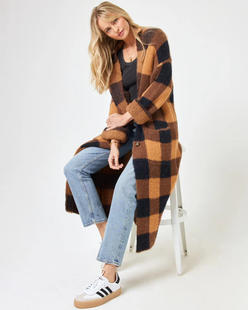 Embrace all the comfy-cozy vibes with the Harlow Coat. This midi-length jacket is soft and substantial thanks to the plush sweater knit plaid fabric. The open front, hidden pocket and polished lapels make this the perfect pick for cooler weather. Wear it over our signature active jumpsuit for a ready made outfit.
