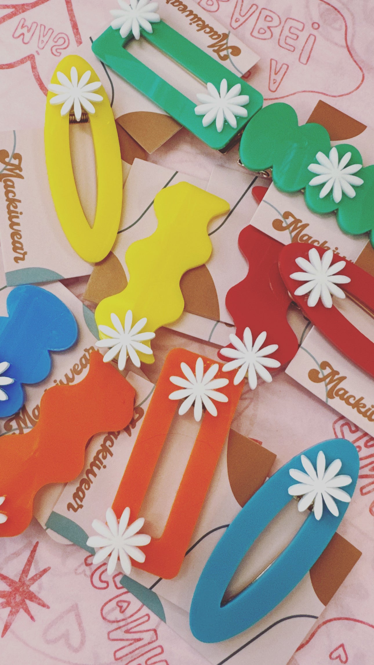Upgrade your hair game with these quirky Primary Daisy Hair Clips. These dainty daisies add a playful touch to any hairstyle. Perfect for everyday wear or special occasions. Don't wait, grab them now! (Flower power!)