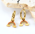 These adorable mini hoops feature a sweet little rainbow charm, adding a touch of whimsy to any outfit! Perfect for those with a playful style, these earrings bring a unique twist to the classic hoop. Give your accessory game a fruity pop with these Rainbow Charm Earrings!