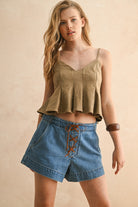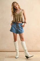 Saddle up in this flared suede cami that brings all the dusty-desert glam. With its swingy silhouette, flattering V-neck, and rich camel hue, this top is ready for sunshine, rodeos, and everything in between.