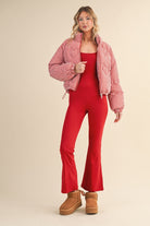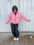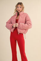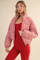 Bold, playful, and undeniably sweet — this puffer brings all the charm. With its red gingham pattern and heart-shaped quilted stitching, it’s a flirty take on cold-weather style that keeps you warm while standing out. Cropped fit, high collar, and drawstring hem give it a modern silhouette that pairs effortlessly with denim or leggings.