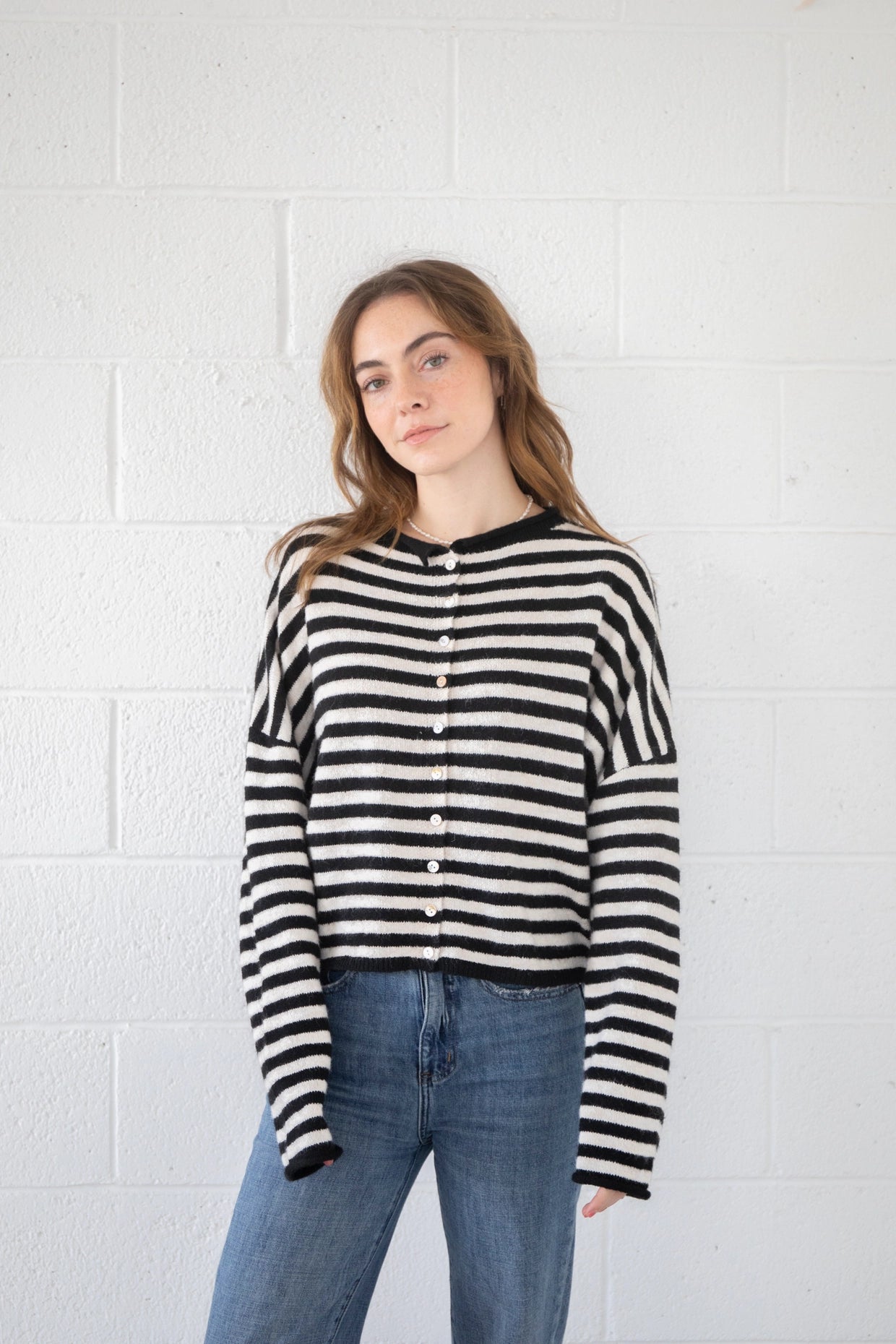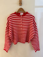 Meet the Viola Cardigan, your go-to for cozy cuteness with a pop of playful charm. Featuring stripes, a relaxed fit, and button-down front, it’s perfect for layering over tanks, tees, or bralettes. The slouchy sleeves and soft knit fabric give it that effortlessly cool, lived-in feel. Pair with high-rise jeans or a flowy skirt for an easy, everyday look. It’s the kind of cardi you’ll reach for again and again.