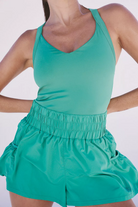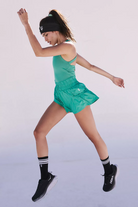 An essential one-and-done silhouette, this sporty onesie features a formfitting top with a strappy back and relaxed fit shorts.