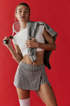 Take your favorite collection to the court in this so sporty and feminine skort featured in a mini-length and soft fabrication with built-in shorts, a supportive waistband, and zippered back pocket.