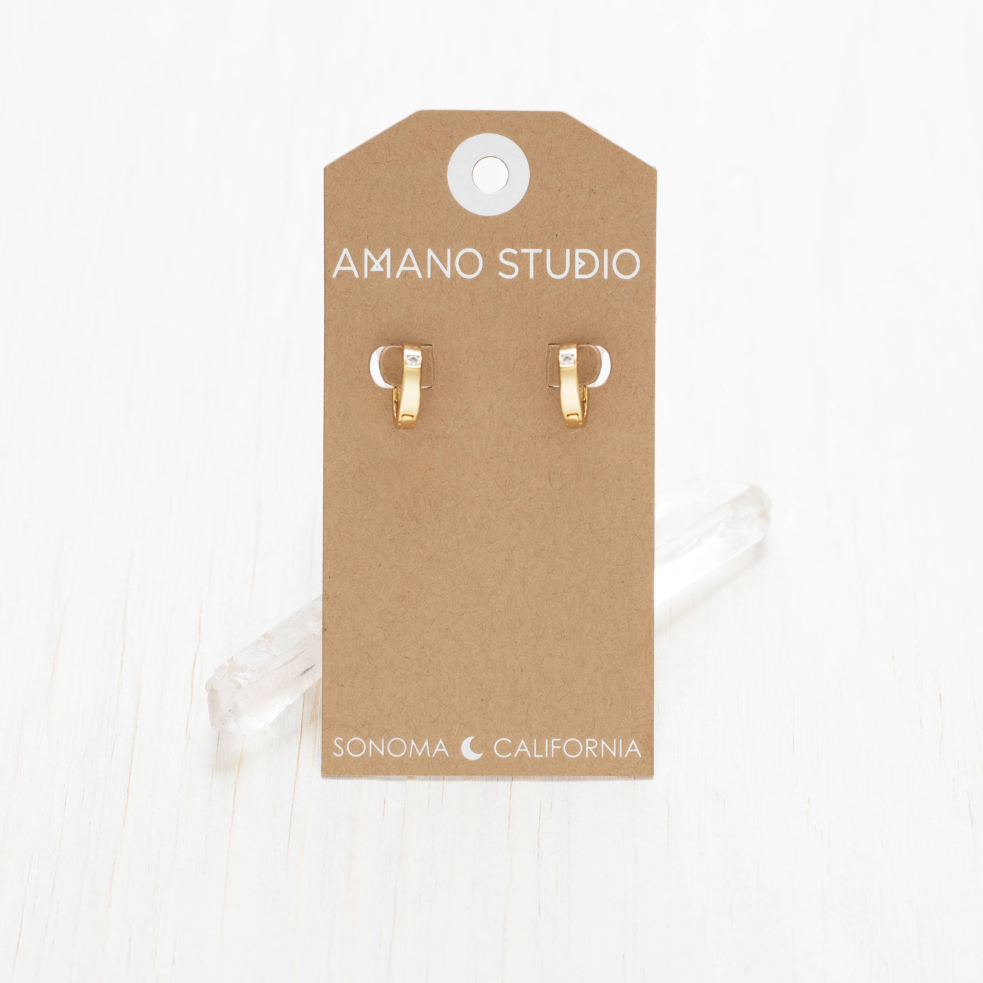 Made of 14k gold plated brass + coated to resist tarnish and create a hypoallergenic surface.