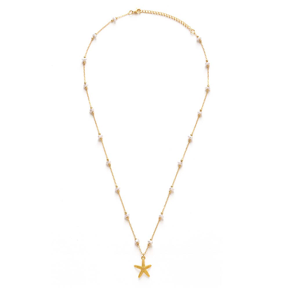 3/4" Starfish charm on 18" freshwater pearl station chain.