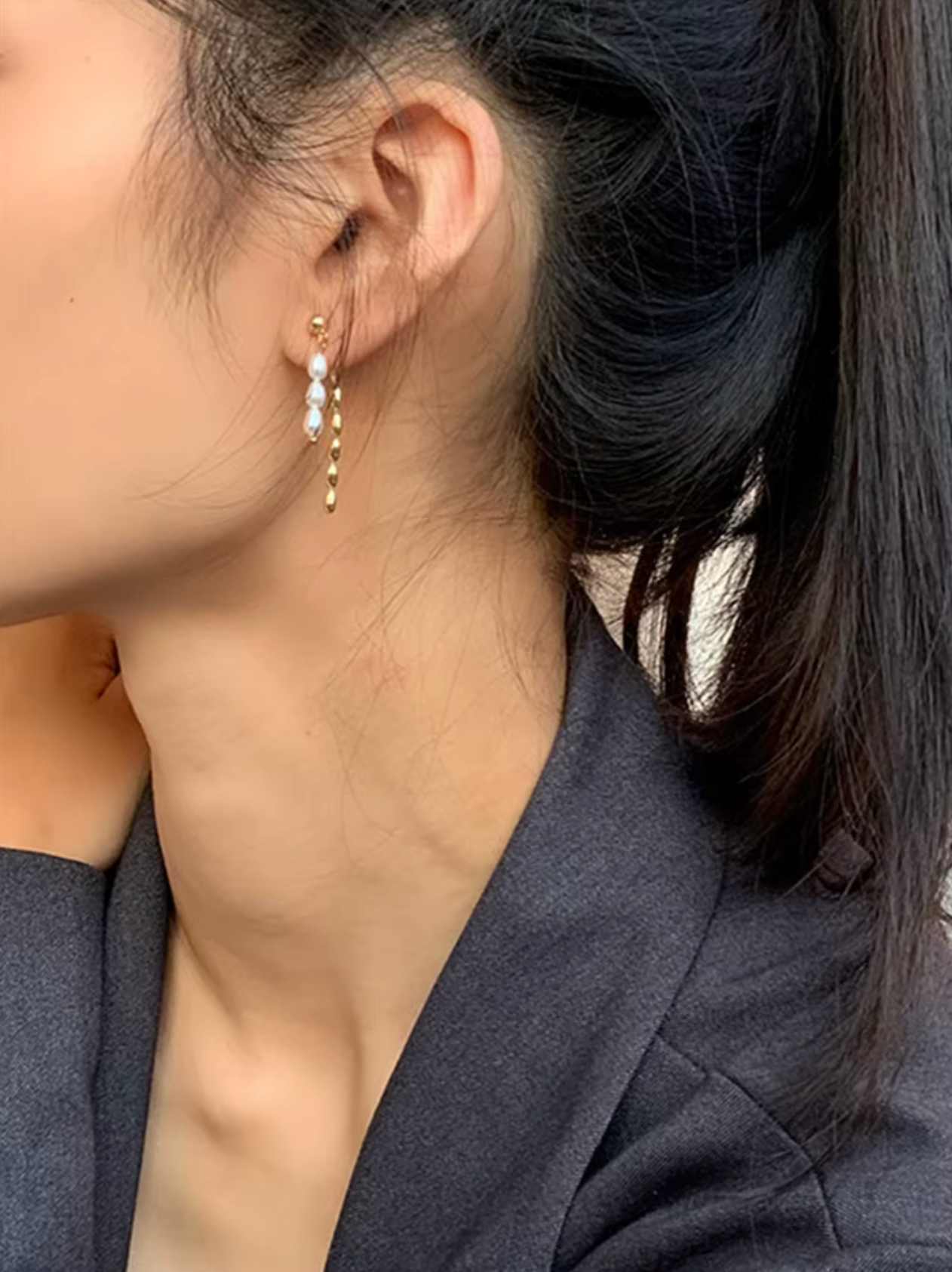 Indulge in luxury with our Golden Pearl Cascade Earrings. The elegant asymmetrical design adds a touch of sophistication to any outfit. Make a statement and elevate your style with these exclusive earrings, inspired by the world of art and fashion.