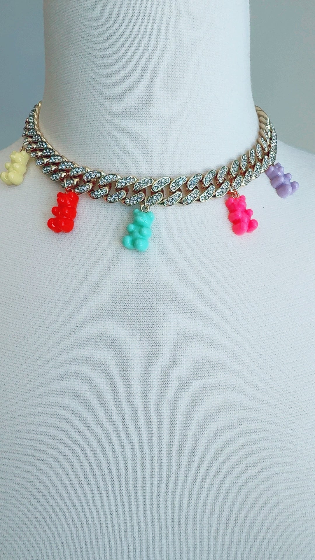 Get ready to rock your style with our Gummy Bear Chain Choker! This colorful and playful accessory features a bling chain that will add a touch of fun to any outfit. So go ahead, be the life of the party with this unique and trendy choker.