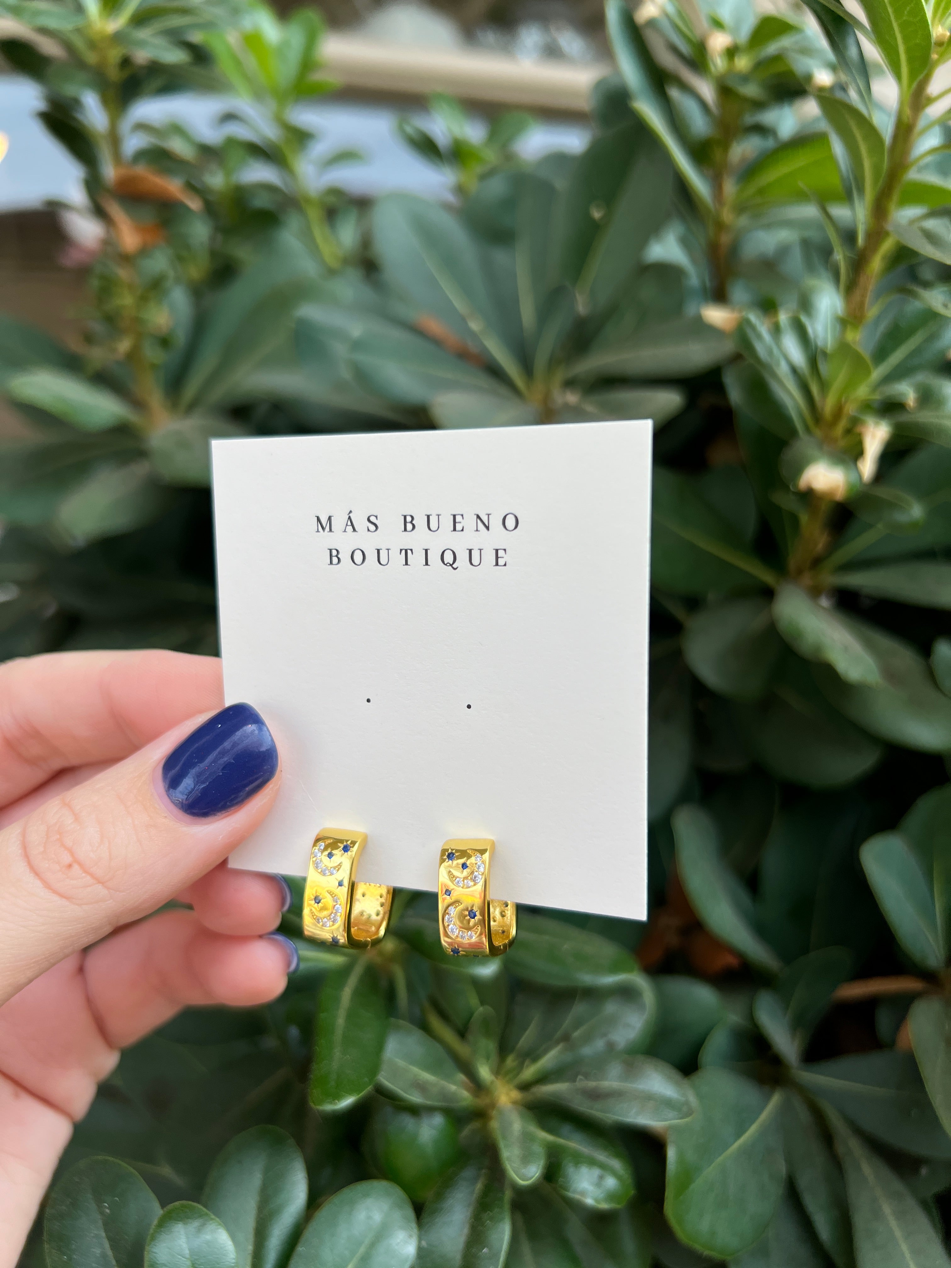 Elevate your style with our Stars and Moons Square Earrings. Captivating blue stars and moons adorn these sophisticated gold square earrings, adding a touch of celestial elegance to any ensemble. Make a statement with these exclusive, artistic earrings.