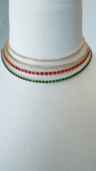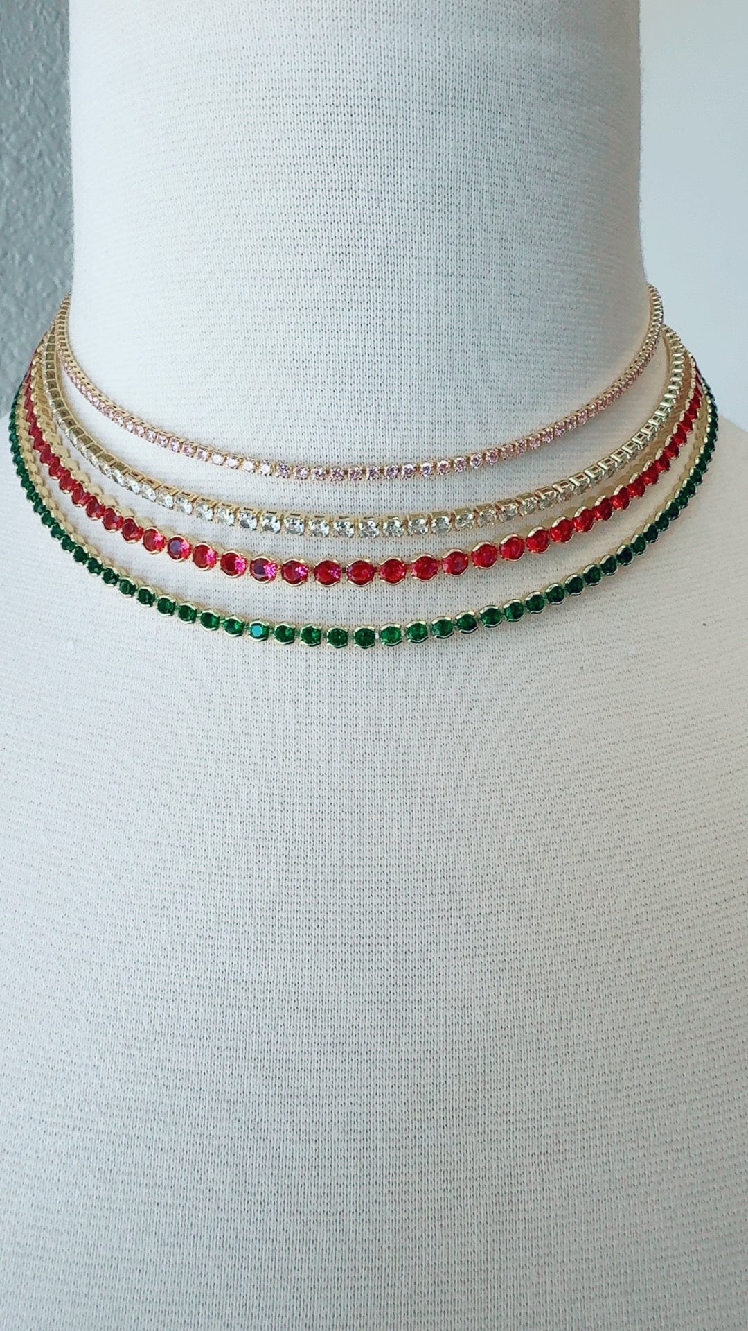 Indulge in the luxurious world of fashion with our Tennis Chokers. The assortment of colors offers a sophisticated touch to any outfit. With an adjustable design, it offers a flawless fit for any neck. Elevate your Style and make a statement with these elegant chokers.