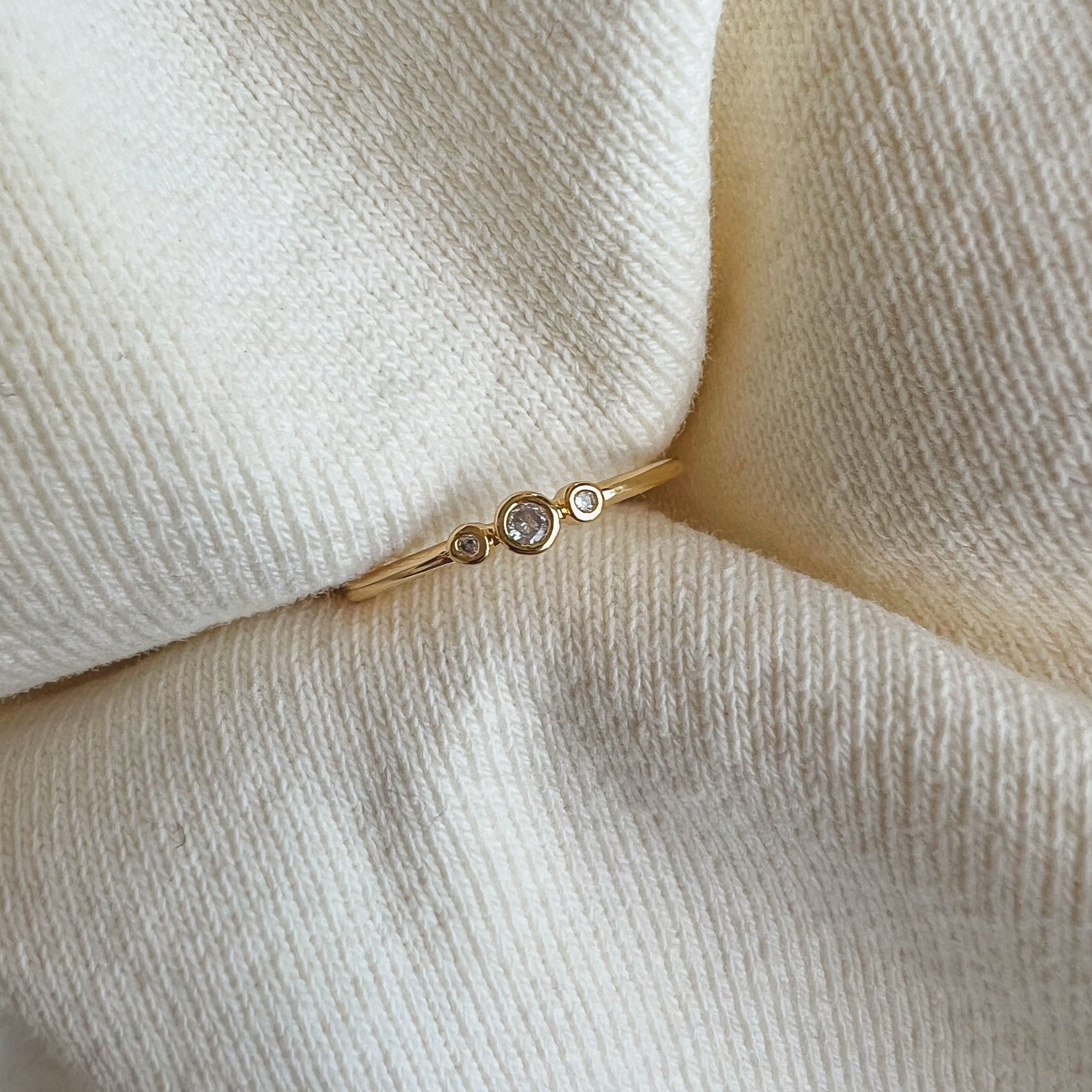 This beautiful Trinity Minimal Ring represents past, present and future. Crafted with a dazzling gold Trinity stone, this ring will have friends asking, "where did you get THAT?!" A perfect minimalistic statement piece that is sure to sparkle and shine.