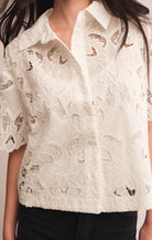 Intricate embroidery and an airy feel make this button-up an easy way to dress up your look. Delicate embroidery meets breezy cotton crepe in this short-sleeve button-up. The collared silhouette and airy fabric make it a polished yet easy layer for day-to-night styling.