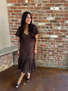 Feminine and flattering, the Storia Puff Sleeve Midi brings just the right balance of romance and wearability. With a relaxed A-line silhouette, puff sleeves, and embroidered detailing, it’s designed to flatter while keeping you comfortable. A flared skirt with tiered ruffle hem adds graceful movement, making this the kind of dress you’ll reach for again and again.