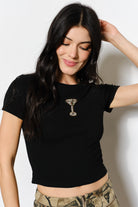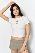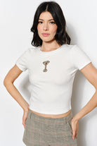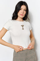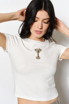 Your new favorite going-out tee. The Martini Bead Tee features a sleek fitted cut with a playful beaded martini glass detail that adds instant charm to any outfit. Made from a soft ribbed knit, it’s comfy enough for daytime wear but stylish enough to carry you straight into the night.
