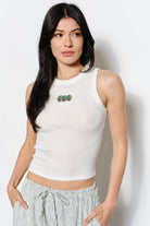 Give your basics a fun upgrade with the Olive Bead Tank. Made from a soft ribbed knit, this fitted tank features a quirky beaded olive embroidery that adds just the right amount of personality. Perfect for layering or styling solo, it’s a playful piece that works year-round.