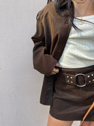 Part skirt, part shorts, all attitude. The Rebel Belted Skort is crafted in rich faux leather with a structured fit that hugs in all the right places. A bold silver ring belt adds instant edge, while the hidden shorts keep you comfortable and confident from day to night.