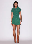 The Rib Polo Bodysuit by Fleur Du Mal is cut from seamless, lightweight ribbed knit — refined enough for evening, relaxed enough for day. A button-up polo collar and short sleeves give it a sporty-luxe edge, while the thong-cut back and bottom snap closure keep the silhouette sleek and secure.
