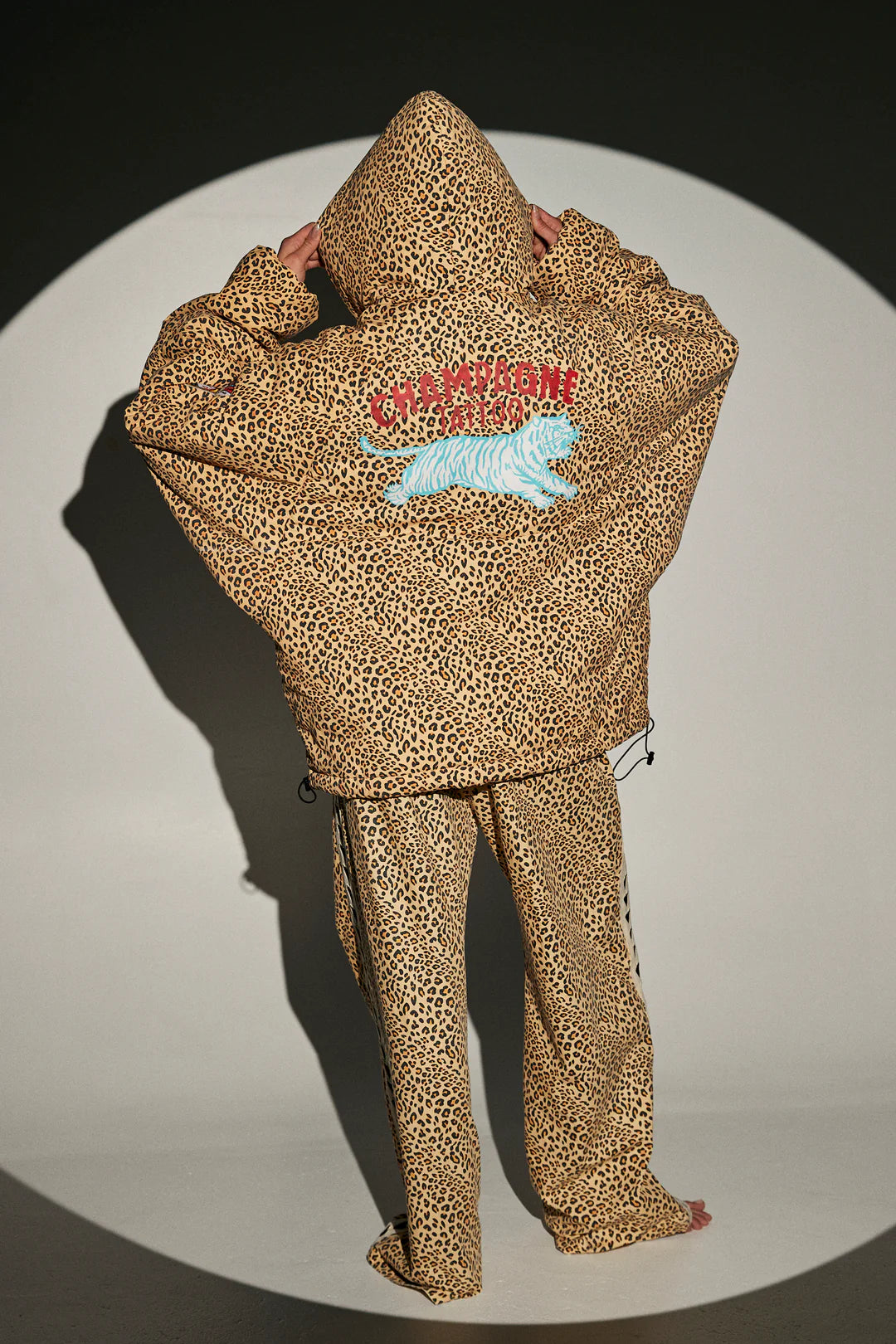The Leopard Bomber is pure Sabbi chaos: oversized, padded, and built for babes who run wild. Wrapped in leopard print and stamped with our iconic patches, she’s a walking party front to back. Lucky cat on the chest, champagne tiger on the rear. Enough said.