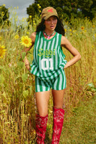 Meet The Knit B-Ball Singlet - the retro-sporty, festival-ready, sunshine-loving top that brings instant main-character energy. Boasting bold stripes, this breathable open-knit tank is the perfect mix of playful and nostalgic.
