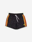 Made from lightweight 100% polyester, these swim shorts feature a premium soft boxer-brief liner for comfort, a relaxed elastic waistband, and a tearaway size tag that eliminates irritation. Finished with a subtle tonal leopard pattern and multicolor side stripes, they nail the perfect mix of throwback cool and everyday function.