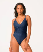 The Penelope One Piece is the ultimate blend of elegance and allure. With a plunging V-neck and cinched detailing throughout, it flatters your shape while offering a bold, feminine silhouette. The adjustable criss-cross back ties ensure a perfect fit, while 24k gold-dipped ring details add a touch of luxury.
