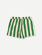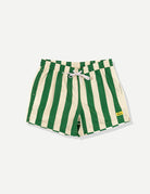 Cut from lightweight 100% polyester, these shorts are built with a premium soft boxer-brief liner and side slits for all-day comfort. The elastic waistband features a tearaway size tag for irritation-free wear, while a Velcro back pocket with a drain hole keeps essentials secure. Finished with bold green-and-cream stripes and a woven Duvin label, they’re equal parts nostalgic and fresh.