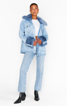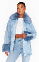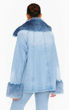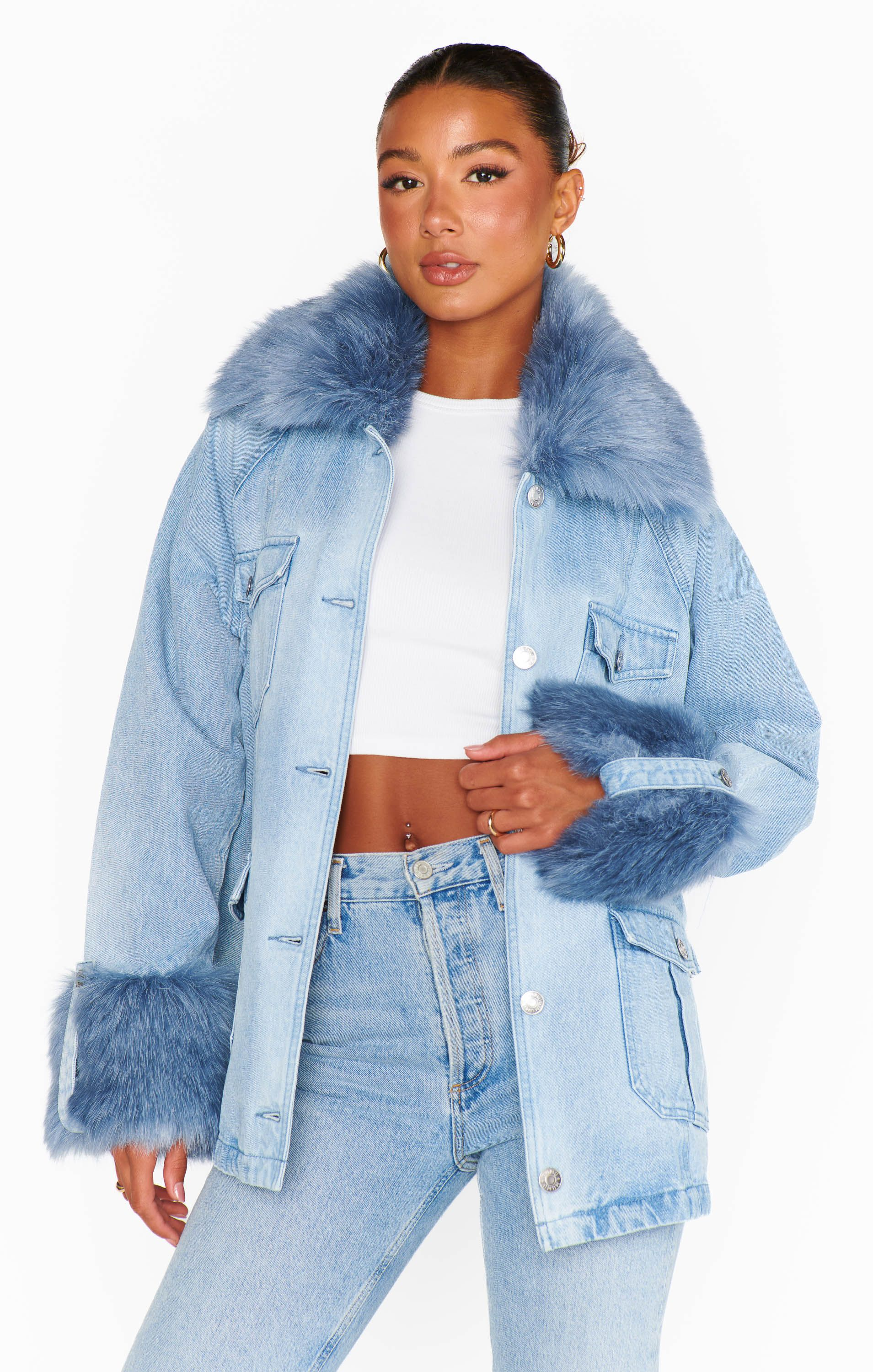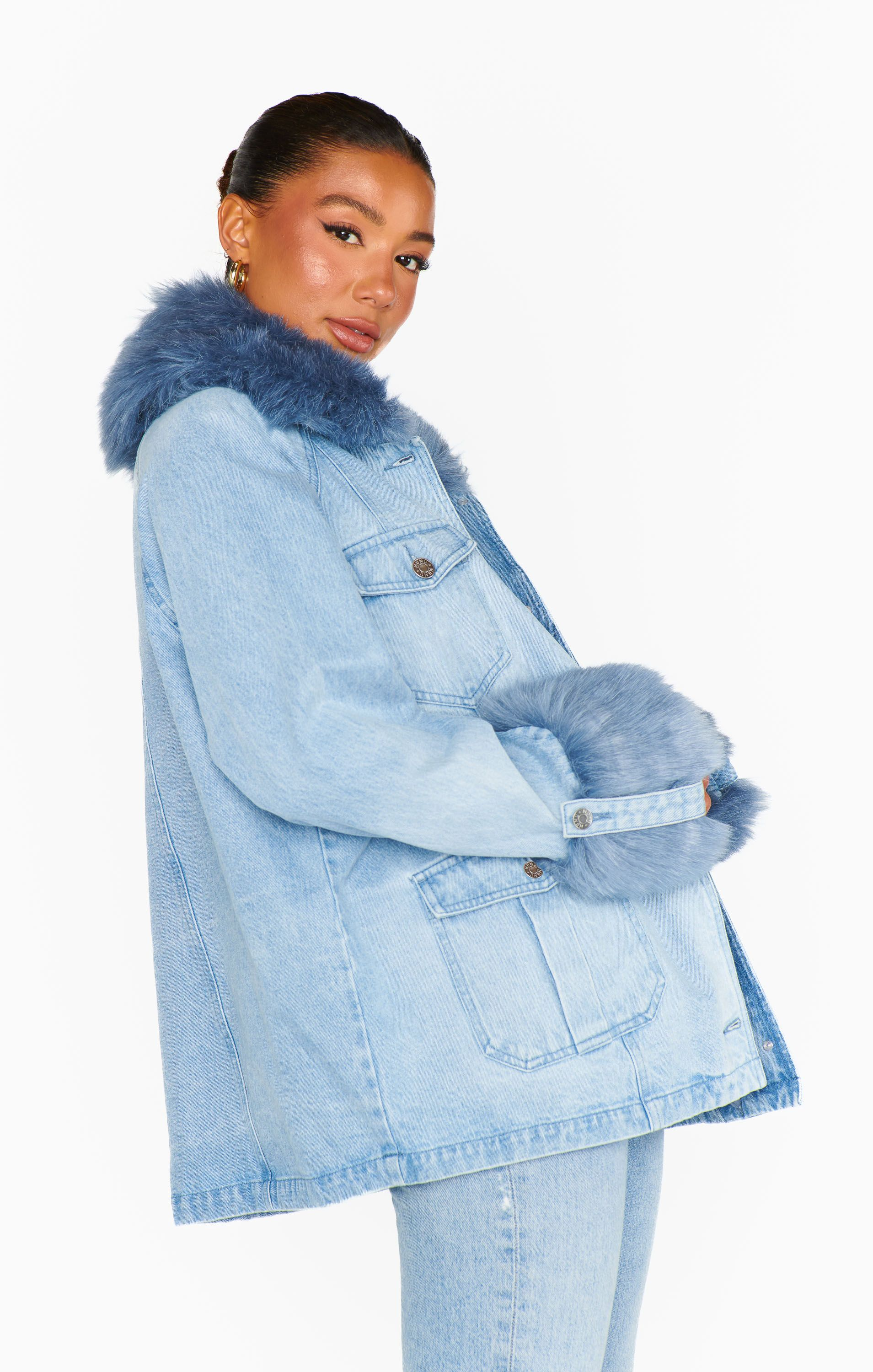 Elevate your style with the Copenhagen Jacket. This luxury jean jacket features a lush fur trim, adding a touch of sophistication to any outfit. Stand out in the crowd with this exclusive and tasteful piece, perfect for those seeking a touch of elevated fashion.