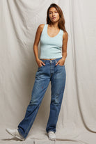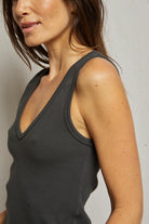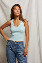 this silhouette shouldn’t be a stranger. it’s our bestselling blondie body now offered in a v neck. routinely paired with classic denim or one of our relaxed french terry bottoms, you will want to add this ribbed tank into your weekly wardrobe rotation.