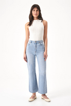 - Rigid denim feels tighter than stretchier jeans, so we suggest to go up a size