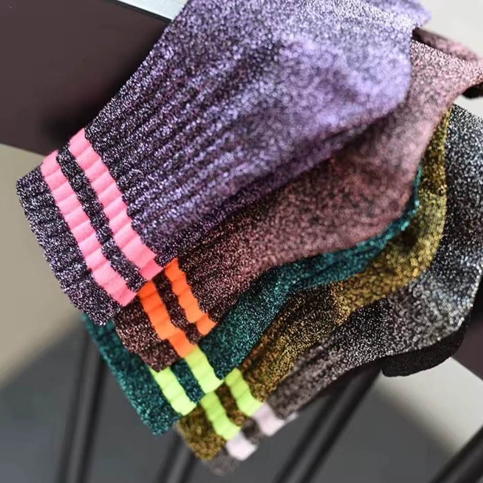 Meet your new favorite everyday socks! Shimmer Sport Socks bring that sporty aesthetic with a girlie sparkle twist—perfect for girls who love the athletic look without needing actual sports. Rock them with sneakers, slip-ons, or loungewear for instant style that shimmers with every step. Playful, comfortable, and undeniably cute, these socks are all about expressing your fun personality in the most fabulous way possible!