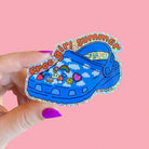 I can't be bothered to wear shoes that I have to tie. It's a croc girl summer baby. Vinyl water resistant sticker with glossy finish and glitter detail.