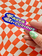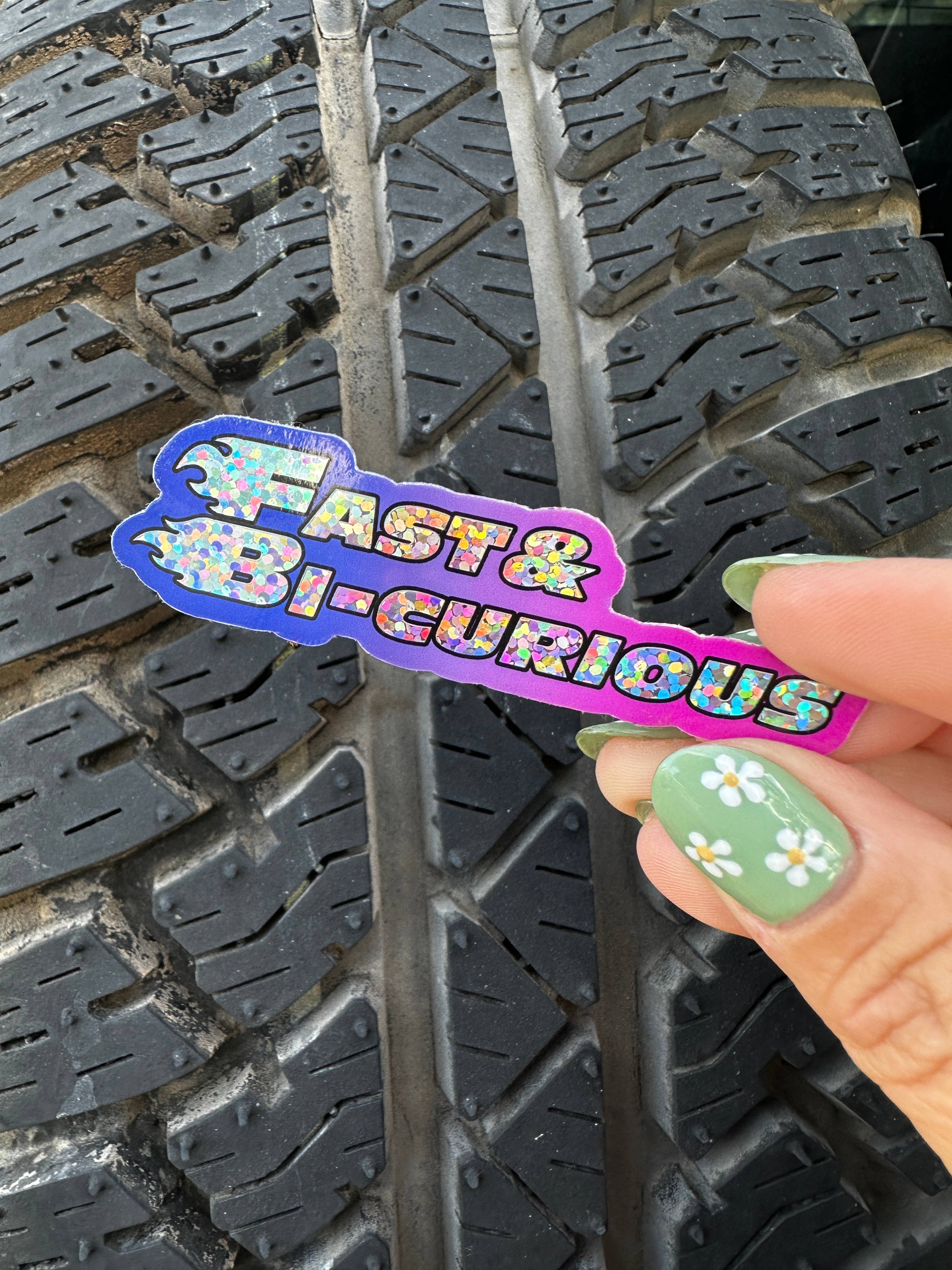 This sticker is the perfect size for laptops, water bottles & phone cases - with the words “Fast & Bicurious” in a dazzling glitter hologram finish.