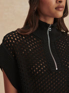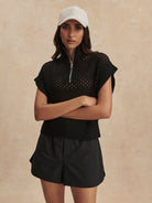 The Gaines boasts an oversized half-zip design with chic cap sleeves. Made in our textured Pineapple Knit, wear it with a bralette on warmer days and easily tuck it into shorts or pants thanks to the ribbed hem.