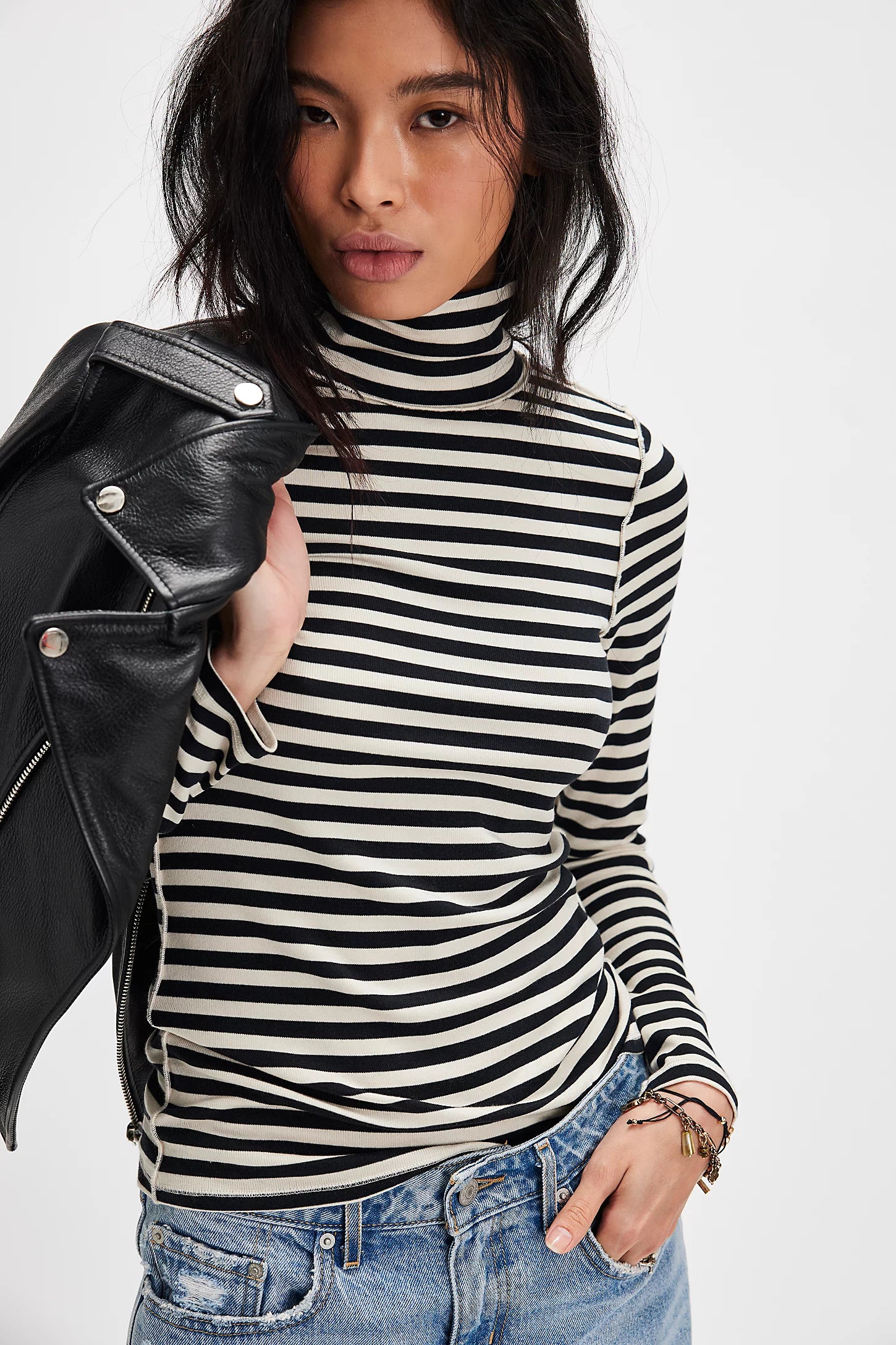 The most essential layering piece from our We The Free collection, featured in a striped fabrication and slim-fitting silhouette with a turtle-neckline and long-sleeves.